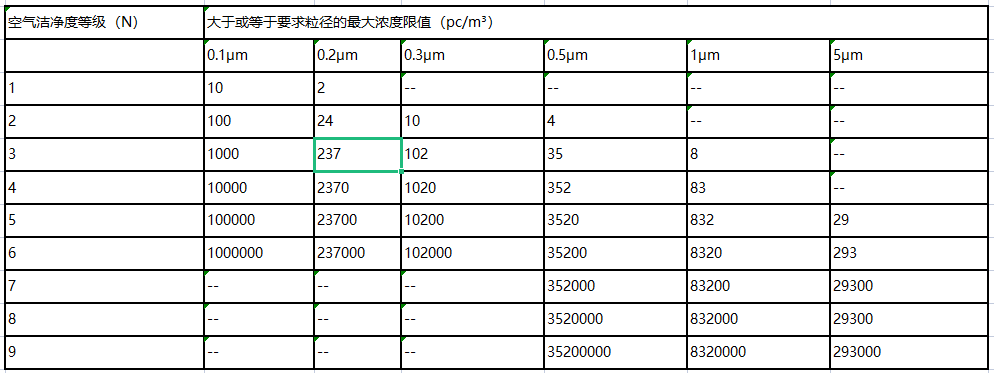5 、 電子工業潔凈室空氣潔凈度等級表 :